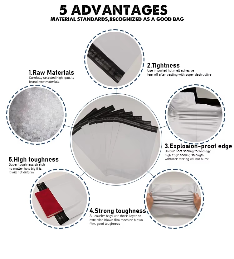 ThePE Poly Mailerby Zeal X je vyroben z vysoce kvalitního recyklovatelného polyetylenového (PE) materiálu, který je netoxický, bez zápachu a voděodolný. Každý sáček je pečlivě navržen tak, aby chránil produkty během přepravy a zároveň minimalizoval odpad. Jeho struktura odolná proti roztržení a vlhkosti zajišťuje, že vaše zboží dorazí bezpečně a profesionálně. Díky tomu je ideální volbou obalů pro oděvní značky, online prodejce a logistické společnosti po celém světě.